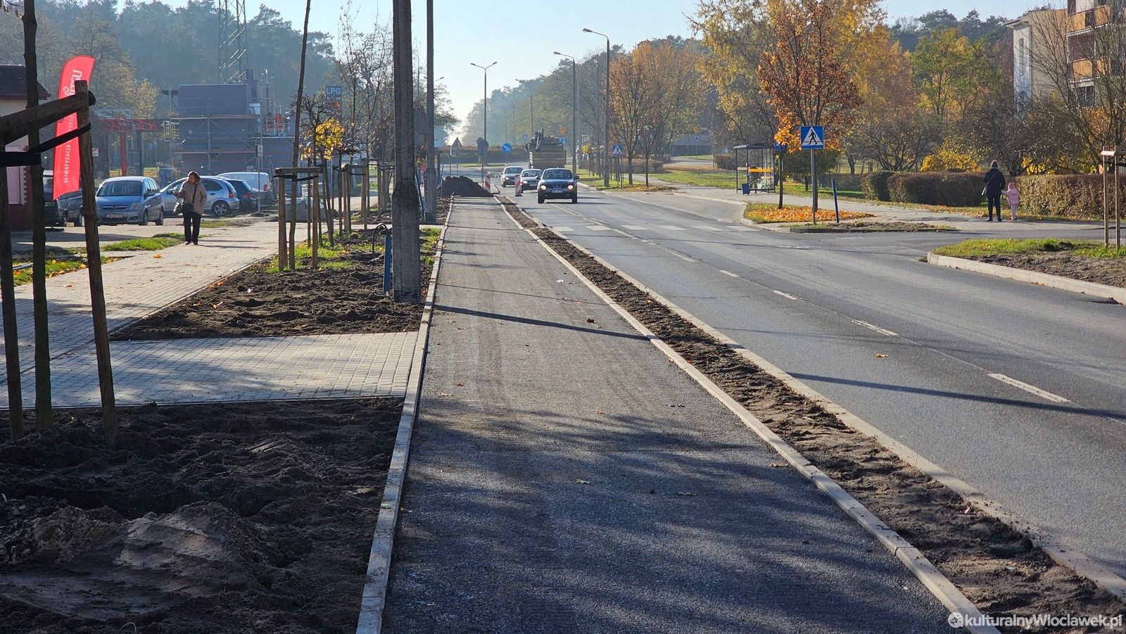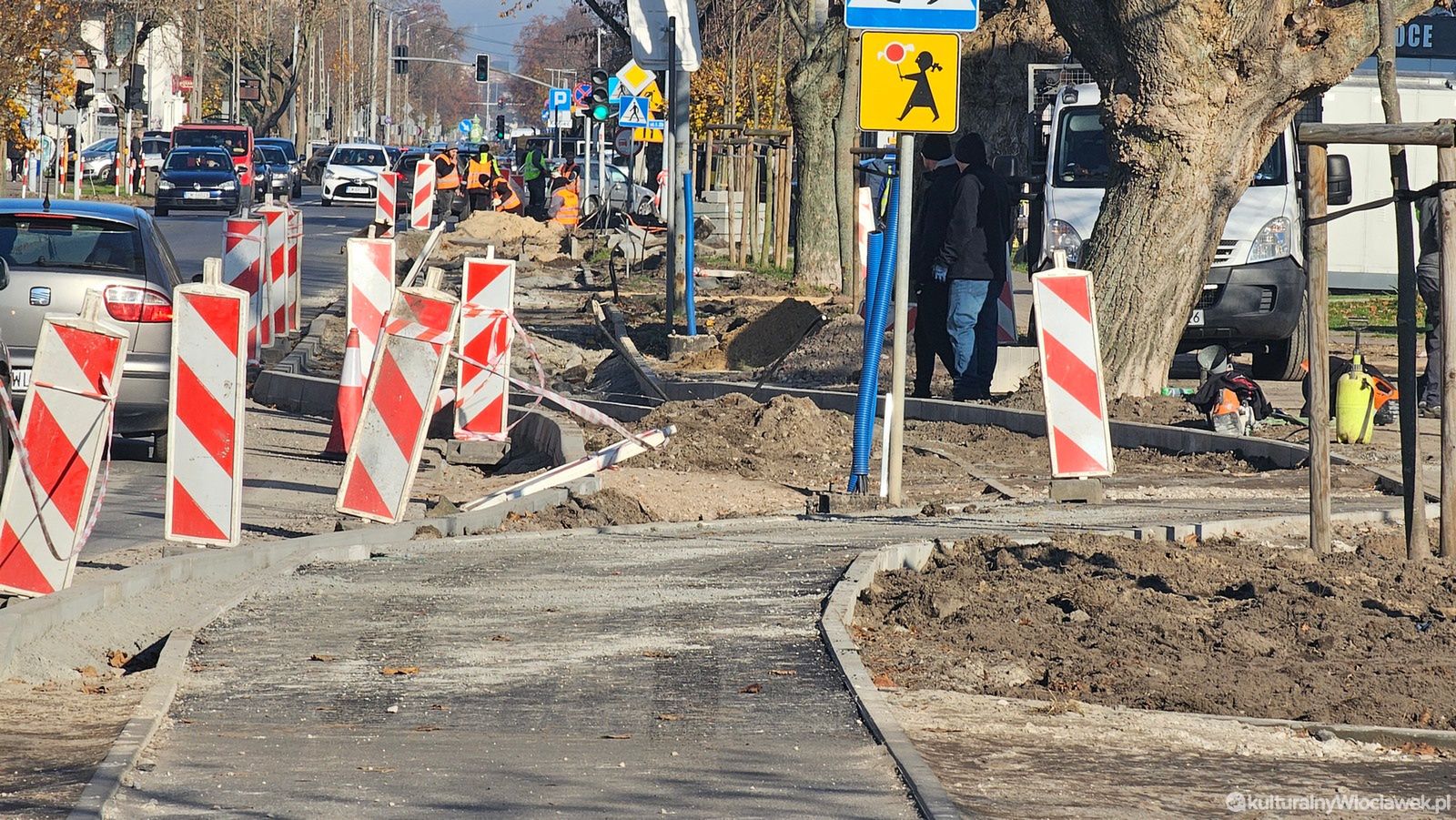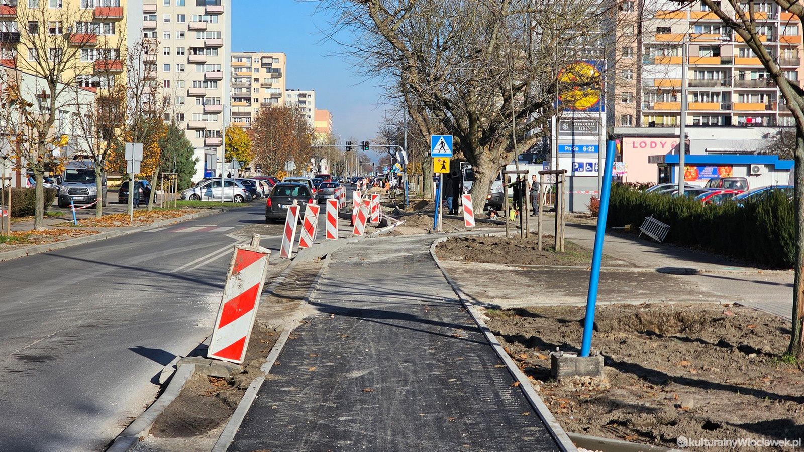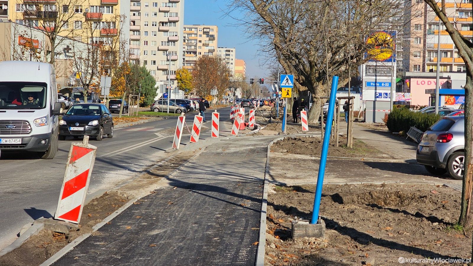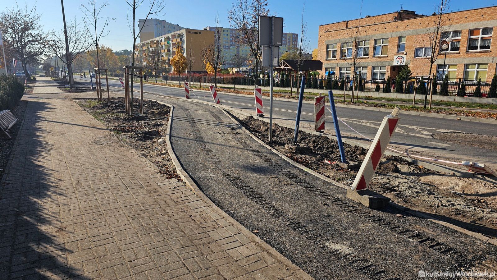 Trwają prace przy budowie nowej ścieżki rowerowej wzdłuż ulicy Kaliskiej we Włocławku. Na odcinku od ronda Falbanka w kierunku centrum można już zobaczyć pierwsze efekty inwestycji – robotnicy przygotowują podłoże i układają krawężniki. Nowa trasa ma poprawić bezpieczeństwo rowerzystów oraz ułatwić poruszanie się po jednej z głównych arterii miasta.