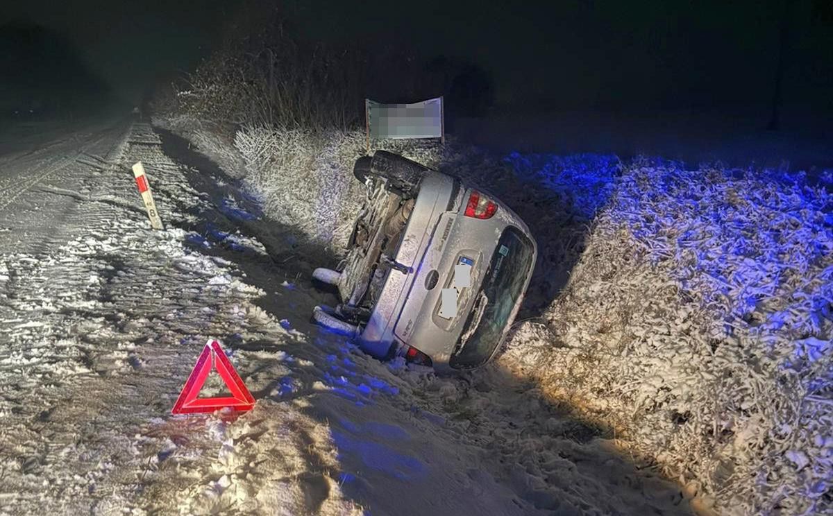 Do groźnie wyglądającego zdarzenia doszło dziś (26 listopada 2025 r.) około godziny 3:40 w miejscowości Płowce, na drodze krajowej nr 62. Jak ustalili policjanci, 25-letnia mieszkanka powiatu radziejowskiego, kierująca renaultem, nie dostosowała prędkości do panujących, zimowych warunków na drodze. Na śliskiej nawierzchni straciła panowanie nad pojazdem, zjechała do przydrożnego rowu, gdzie auto dachowało.