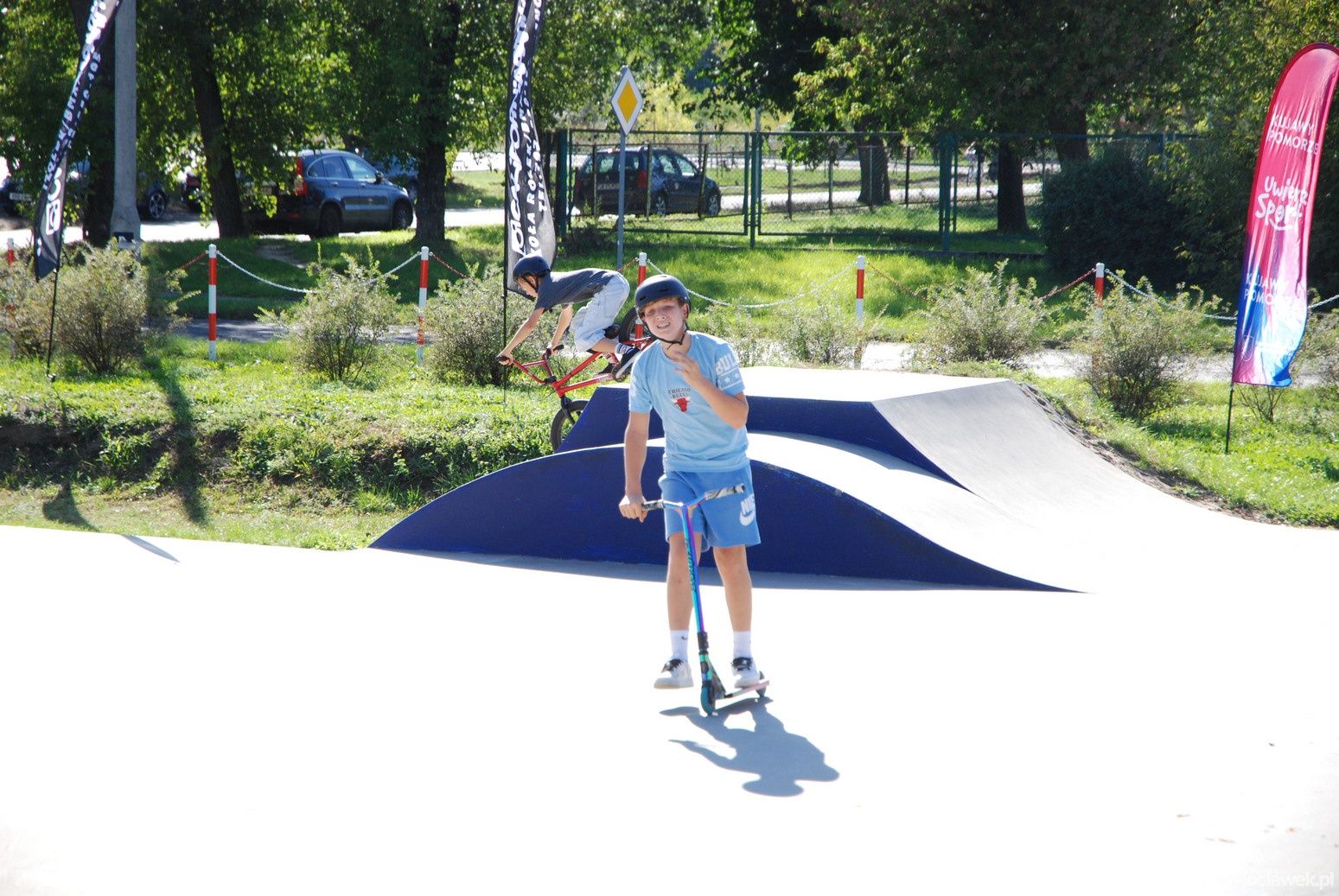Od rana uczestnicy mogli rozwijać swoje umiejętności podczas zajęć prowadzonych przez instruktorów. Warsztaty cieszyły się ogromnym zainteresowaniem – młodsi i starsi śmiało podejmowali nowe wyzwania, ucząc się trików i doskonaląc technikę jazdy.